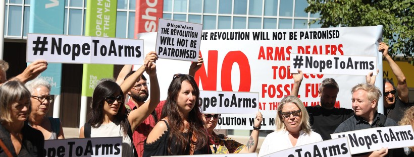 - The Nope to Arms Collective, which includes Shepard Fairey, Milton Glaser and Peter Kennard, criticise museum’s lack of action on a promised review of fundraising policies