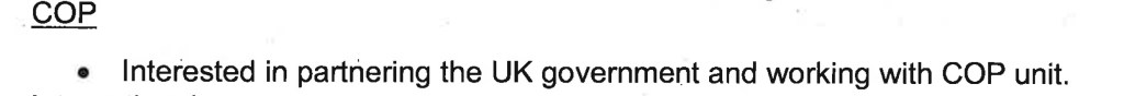 - Shell has been seeking to ‘partner’ with the government on COP since July 2019 and raised COP26 over dinner with the UK Ambassador in the Hague.