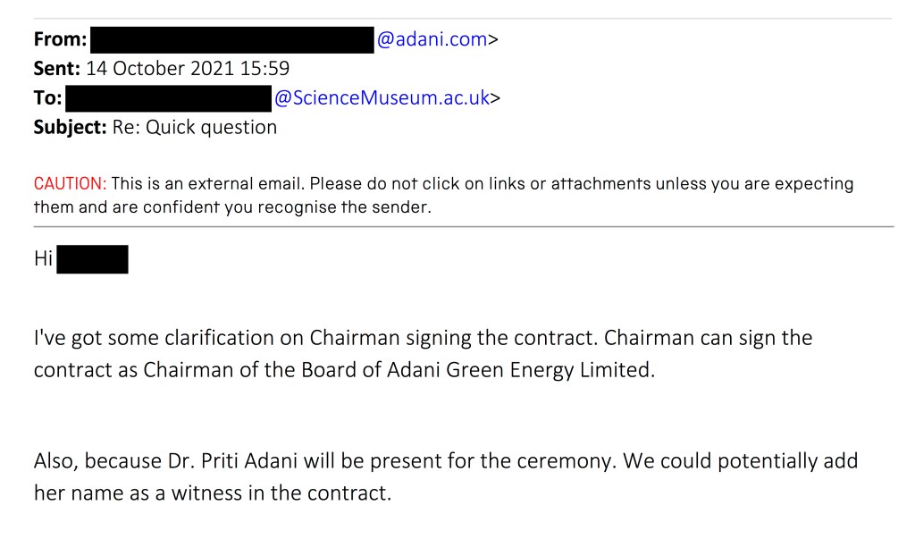 This undermines the museum’s argument that this is just a partnership with Adani Green Energy, not the wider Adani Group.