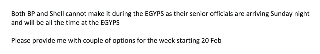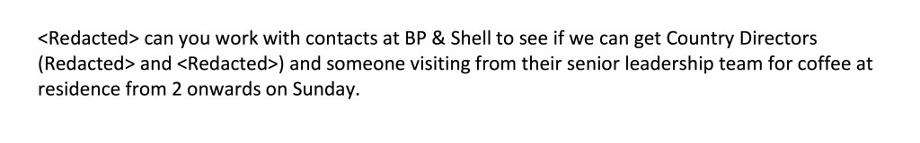 The response two days later, after working with contacts at BP and Shell to try and secure meetings, is that: