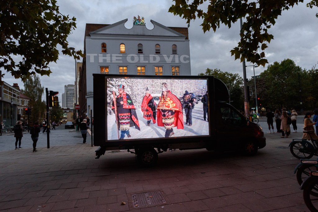 The short film of ‘Tickets are Now on Sale’ – a play by one of Britain’s greatest living playwrights Caryl Churchill – was screened on an LED Ad-van outside The Old Vic theatre as the audience arrived for the Press Night of its latest show, Mary Page Marlowe. Culture Unstained, who produced the film, chose the location for its unofficial premier owing to the theatre’s high-profile sponsorship deal with Royal Bank of Canada, which is both a funder of fossil fuel pipeline projects as well as a major investor in weapons being used by the Israeli military.