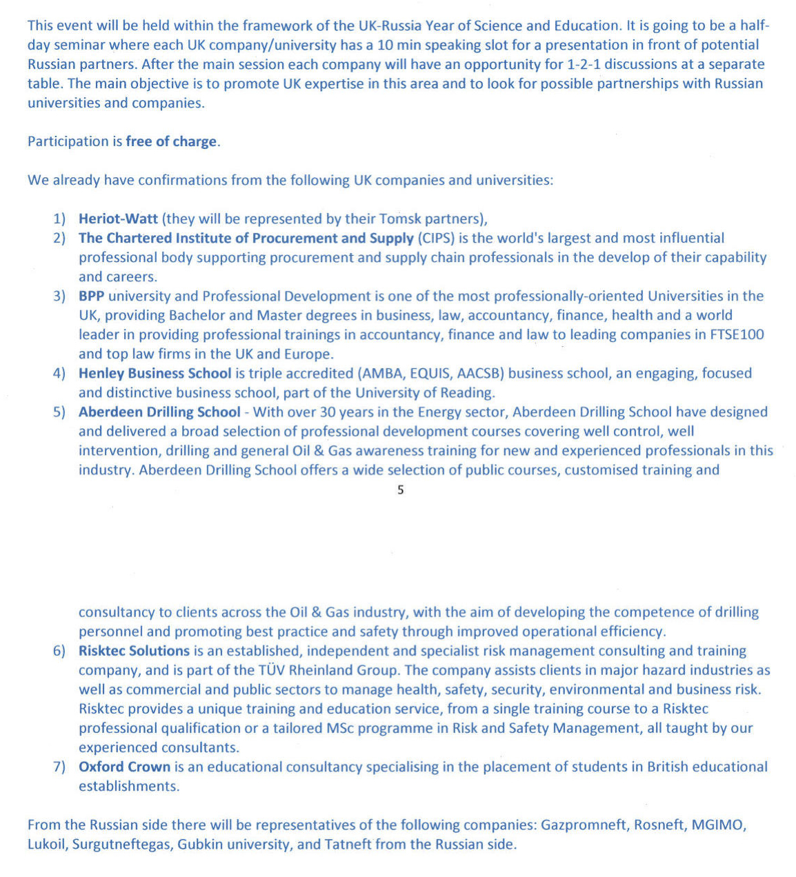 View the email to the President of BP Russia inviting him and giving details of the workshop here.