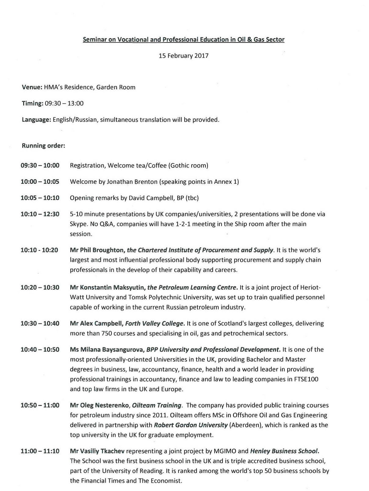 15th February 2017 – British Embassy in Russia hosts workshop on education in oil and gas with BP Russia President giving opening speech