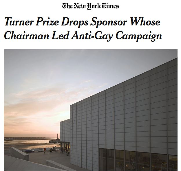 Turner Prize Drops Sponsor Whose Chairman Led Anti-Gay Campaign