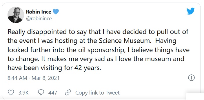 Science Museum Group’s partnerships with fossil fuel companies