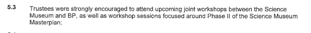 However, as the workshops with BP were being planned a year earlier, the museum’s engagement with TPI was already in the pipeline but seen as a potential way to counter criticism of its stance on sponsorship and sustainability. When a staff member asks for approval of text that would promote the workshops with BP to the museum’s Board, they are advised that “getting our own story in shape, eg use of TPI” is “more pressing”.