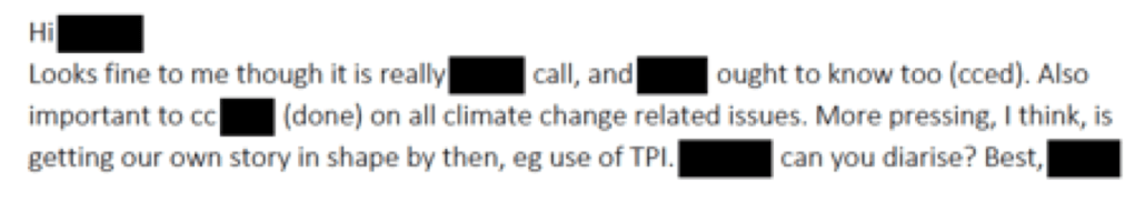 However, emails show that the Director of the SMG had already had ‘a long chat’ with Ian Duffy’s colleague – presumably BP Vice President Peter Mather. He cryptically writes: